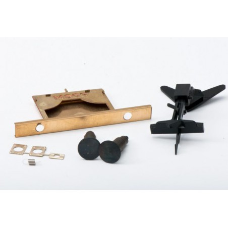 Um die Umrüstung insbesondere bei Pola/Billerbahn/EMA- Fahrgestellen zu erleichtern, bieten wir die Kulissenkupplung auch mit Messing- Pufferbohle an. Pufferbohle und Kulisse sind fest miteinander verbunden , so sind Abstand und Höhenlage durch die Pufferbohle fixiert. Mit Bohrungen für Puffer, Anätzungen für Griffe, Luftschläuche und Kupplungsführung. Bei Waggons mit Bremserbühne o.ä. kann die Pufferbohle ggf. leicht gekürzt werden. Die Kupplung ist nicht montiert. Der Bausatz beinhaltet 2 Puffer und 2 Pufferplatten.Eine ausführliche Bauanleitung kann mitgeliefert werden.
