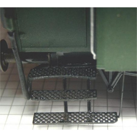 Durchbrochene Tritte für dreiachsigen Umbauwagen (Menne), Bausatz mit Bauanleitung für je 1 Waggon.